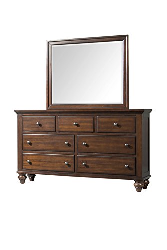 The Abbey Avenue Memphis dresser & mirror set evokes an elegantly rustic style. Antique finished knobs and graceful bun feet perfectly accent its rich Cherry veneer. A charming beveled mirror rests atop seven drawers of ample storage space.