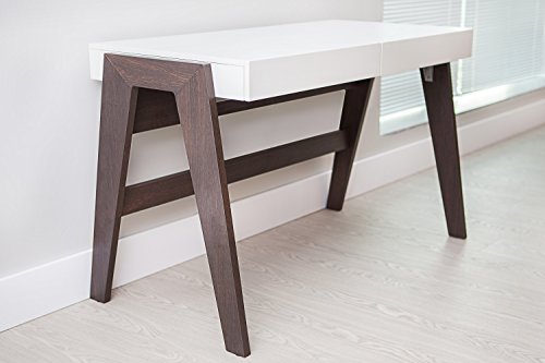 Desk with 25mm thick MDF legs and crosspiece coated with LP melamine film. 1mm thick PS edgeband.15mm thick MDF drawer back panel, front, side panels and top finished with UV printing system. 15mm thick drawer body coated with LP melamine film. 6mm...