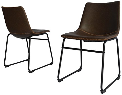 Decorate your bar area of kitchen island with this modern and simplistic side chairs. The seat is upholstered in faux coffee color leather with same color stitching. The base is metal with a comfortable foot rest. Two chairs per order/box