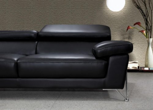 This Modern Black Leather Sofa Set features contemporary functions in an elegant form. Its features include adjustable headrests and lower chrome legs for extra durability. Set includes a Sofa, Loveseat, and Chair with a sturdy chrome construction fo...