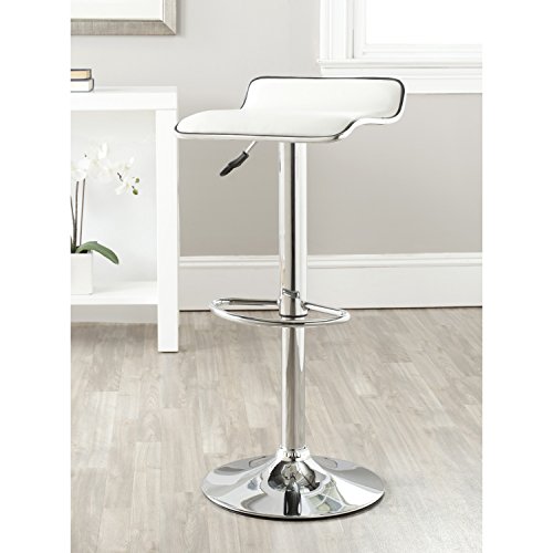 The Safavieh Home Collection Chaunda White Adjustable Barstool's sleek steel chrome detailing and white faux leather fabric makes the ups and downs of daily living a breeze. Crafted with swivel seat that adjusts from 22.4" to 30.9", Chaundra's contem...