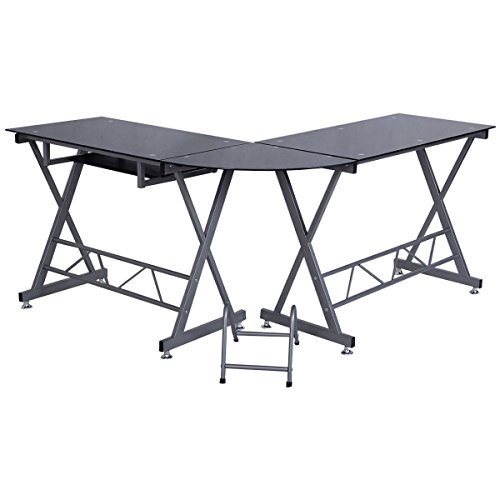 if you like with Tangkula Glass Top Corner Desk L-Shape Home Office Work Station Buy it here