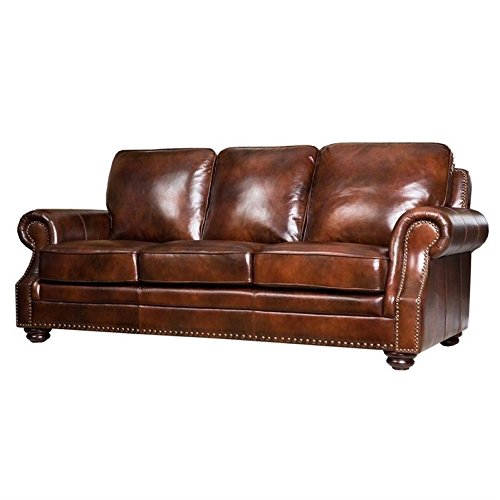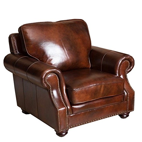 Features: Designed in the USA; Material: Genuine leather (top grain leather) Construction: Kiln dried hardwood Upholstery Materials: Hand-rubbed leather Upholstery Color: Tobacco brown Hand-stitched details Brass colored nail heads for sophisticated ...