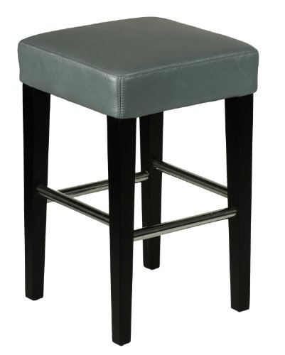 The Viking counter stool features a soft genuine leather in a grey color and a solid wood black frame . It will be a perfect compliment for your stainless steel appliances in your beautiful kitchen. This stool features chrome leg support bars for dur...