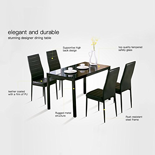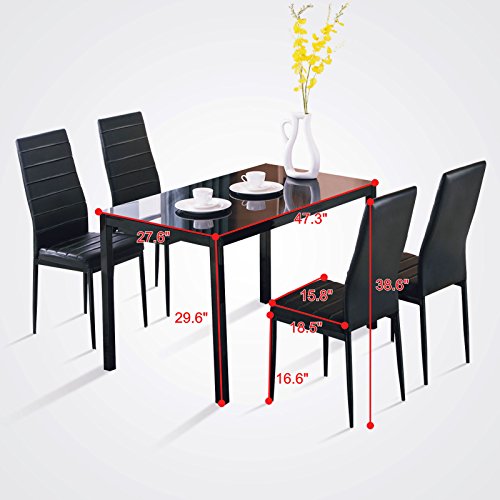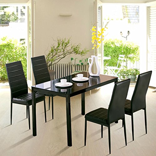 if you like with 4family 5pc Dining Table Set 4 Chairs Glass Metal Kitchen Room Breakfast Furniture Buy it here