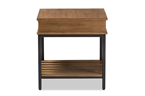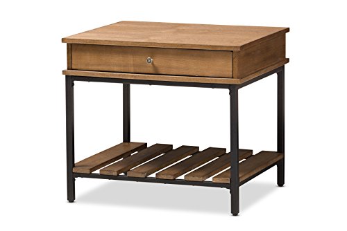 Stark rustic styling plus plenty of surface and storage space combine in our nephele metal and wood end table. This table's vintage industrial design is achieved through black metal textured finishing and distressed ash veneered wood. Decorative meta...