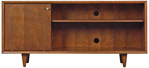 Make the attractive, mid-century modern design of this TV stand a part of your home. Able to support your flat screen TV up to 60 inches and 75 pounds, this TV stand has the tapered legs and mahogany woodgrain finish to make your room a perfect examp...