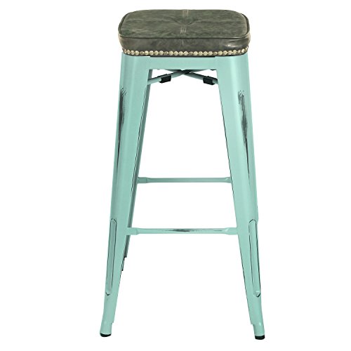 Asense 30 Inch Tolix Style Pu Cushion Top Metal Stools Counter Barstools Four Legged Backless (Set Of 2) Blue 2017 New Arrival with Asensefurniture Inc nearby Readfield