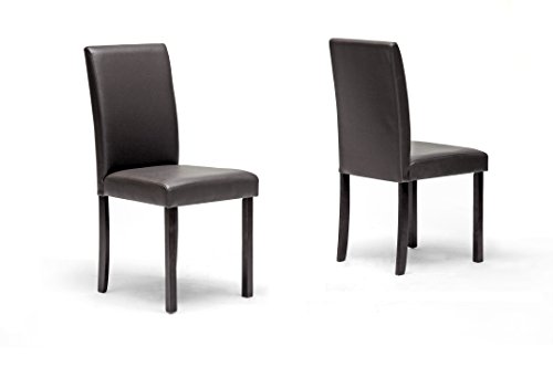 Style to spare. Our Andrew modern dining table expresses the pleasures of simplicity. Contemporary in its approach and classic in its construction, this five-piece dining set boasts a dark brown theme (via wooden frames and faux leather seats) that e...