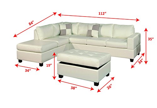 Bobkona Soft-touch 3-pcs Sectional Set (Sofa, Loveset and Ottoman with Storage) Bounded Leather Match in White Color - F7354.The warranty is 180-days from the date of item received.