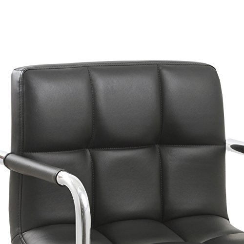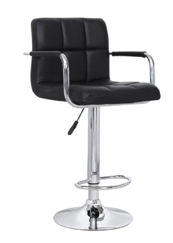 Casual sophistication meets a futuristic touch with this barstool. Upholstered in supple leatherette with grid style lines, this barstool features polished chrome arm rests, foot rest, and adjustable pedestal stand. This barstool features an adjustab...