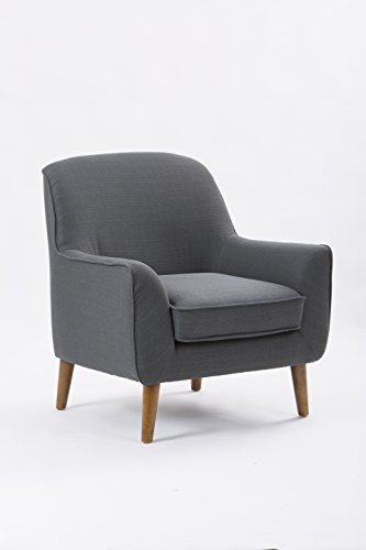 Multipurpose Mid-Century Accent Chair In a Grey Linen Like Fabric With Sturdy Solid Hardwood Legs with contoured arms for added comfort.