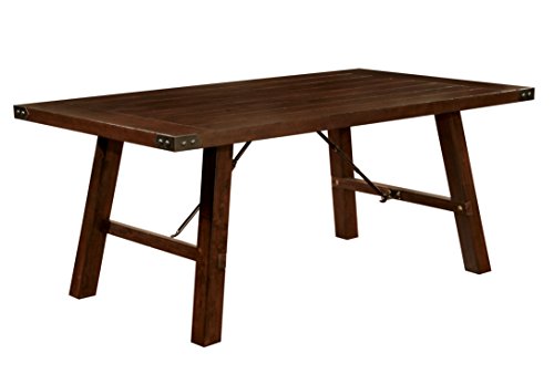 Rejuvenate your style with this on-trend industrial style dining table. This piece showcases a robust wooden construction for long-lasting quality. The spacious rectangular table top is accented with rugged metallic corners and bolt accents, resting ...
