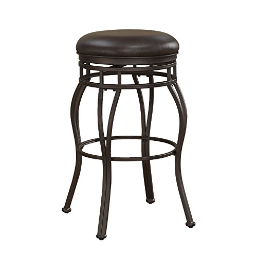 The Villa Tall 34-inch high Bar Stool has a simple design, yet the look is elegant, with curved lines that make it the perfect piece for a variety of decors. Made of durable powder coated metal with a Taupe Grey finish and a Russet Brown bonded leath...