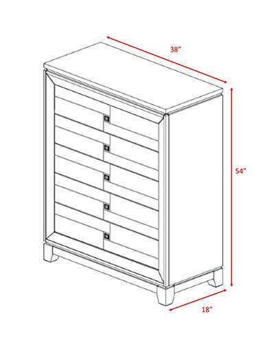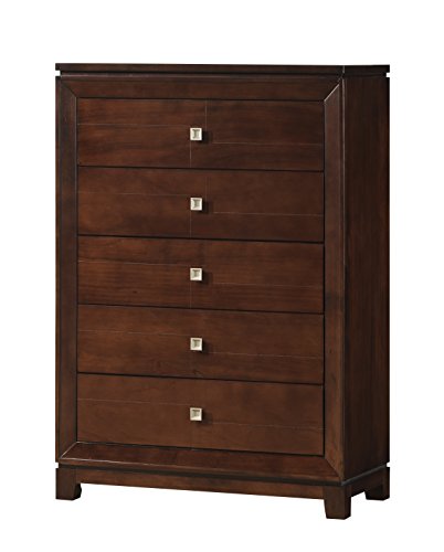 The Abbey Avenue Nolan chest is dignified and contemporary. Brushed silver square knobs pair beautifully with a warm Cherry finish. Five drawers and a unique felt-lined hidden top drawer offer ample space to store personal items.