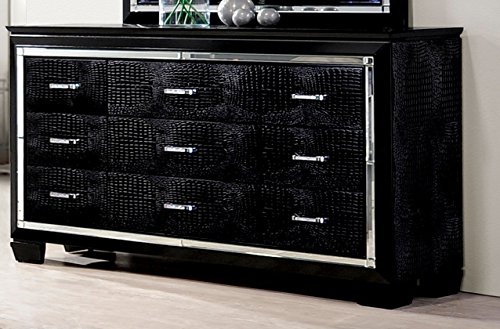 The Mena Dresser and Mirror by ioHOMES pairs chic crocodile texture with stylish silver trim sheen. Its framed design features a felt-lined drawer for delicate pieces while spacious drawers with wide chrome pulls provide ample storage for all your es...