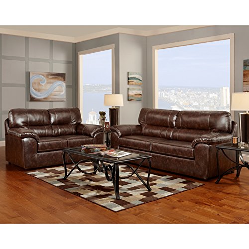 This attractive living room set will make a bold statement with the plush pillow backs and arms. Back cushions are filled with high resiliency polyester fiber providing maximum comfort. Seats have No Sag sinuous steel wire seat springs on 5 inch cent...