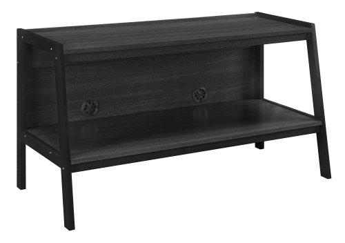 A modern space deserves an Ameriwood Home Lawrence Ladder TV Stand. Complete with a top shelf that can support flat-panel televisions up to 45” weighing as much as 80 lbs., this stand also has a lower shelf to hold all your electronic essentials. T...