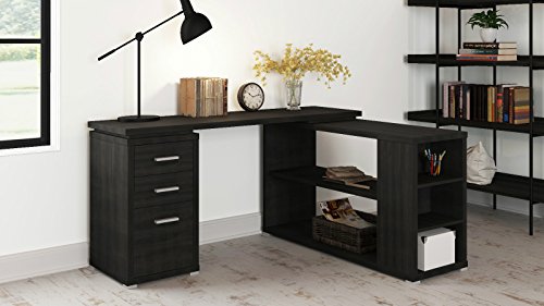 Store your files, books and other office supplies in this Venango l-shape writing desk, which features several display shelves for all your storage needs.