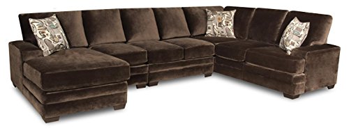 Includes armless chair, armless Loveseat, Left side facing chaise and right side facing corner sofa with toss pillows. Transitional style. Sharpie chocolate/graffiti espresso cover. 100% polyester fabric. Solid kiln dried hardwoods and engineered woo...