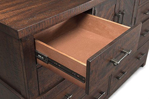 The Abbey Avenue Jasper dresser features a beautiful scoring design and light distressing across the warm Walnut finish. Eight spacious drawers and a door make for a dynamic and functional design with touches of vintage charm.