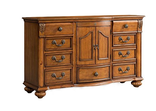The Abbey Avenue ashton dresser boasts ornate details, including antique bronze finished hardware with spool beading. Its rich Oak finish and fluted bun feet bring relaxed grandeur to a classic décor style. Ample storage space makes this piece as pr...