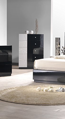 A fresh perspective on modern furniture. The Turin Bedroom adds a charming combination of light grey and black lacquer & uniquely designed headboard that features led lighting. The case goods feature sophisticated design, as well as incredibly crafte...