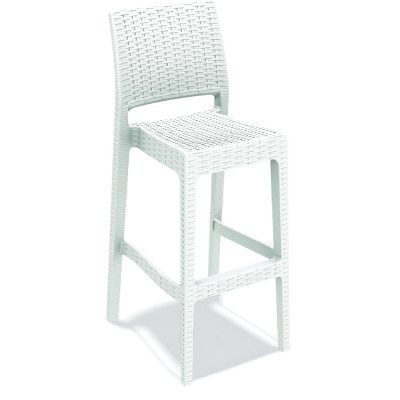Finish: White Features: -Bar stool.-Made from commercial grade resin with gas injection molded legs, with non-skid rubber caps.-Wicker look resin weave design, not woven, will not unravel.-Resistant to U.V, chlorine, salt, stains, suntan oils.-Perfec...