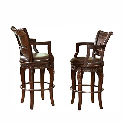 The Antoinette Swivel Bar Height Chairs are beautifully crafted and are loaded with features and details. The Antoinette Swivel Bar Height Chairs feature detailed hand carvings, split leather upholstery, and cherry and mahogany burl inlays in the cha...