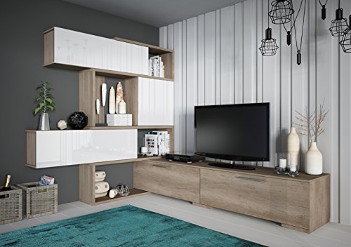 This Ultra-Chic contemporary furniture looks more like wall art than TV wall unit! it combines function and flair, with asymmetrical placement of closed cabinets and open shelves, set at various lengths and heights to best display all your favorite t...
