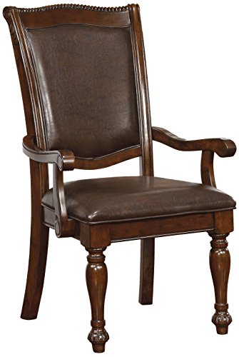 The Kirk Arm Chair by ioHOMES creates a stylish classic style dining room. Cushioned leatherette chairs are distinguished by smooth rounded camelback back rests and elegant scrolled arm rests. Turned legs define the front legs and its solid wood cons...