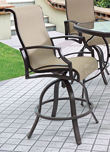 Set of 4. Powder coated frame for corrosion protection. Will transform any backyard into a sophisticated dining environment. Swivel mechanism. Warranty: six months. Made from extruded aluminum. Made in China. No assembly required. 27.58 in. W x 23.64...
