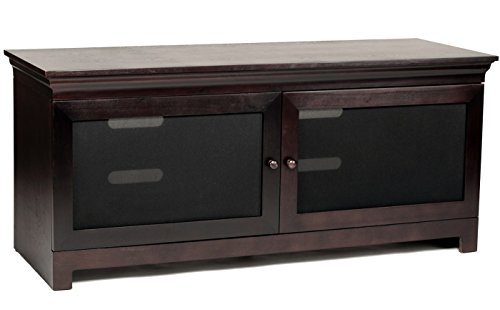 A stylish modern TV stand with a classic look; Accommodate up to 58" plasma, DLP, LCD/LED TVs; Constructed with birch veneer engineer wood with espresso finish; Solid wood door frame with mesh cover to ensure sufficient airflow to keep your audio vid...