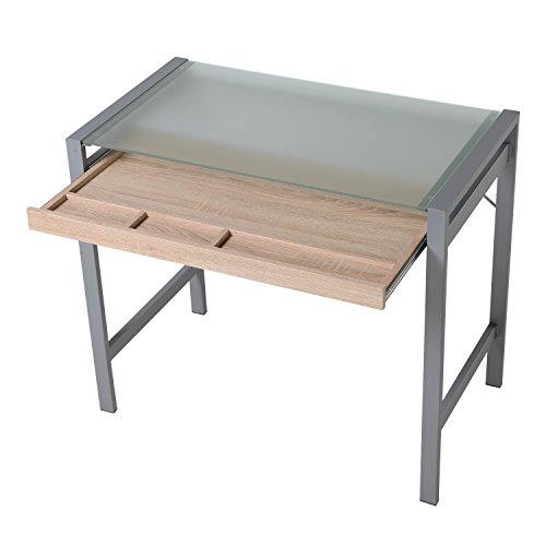 if you like with Homcom Modern Wood Steel Frosted Glass Computer Desk Writing Table W/ Drawer Buy it here