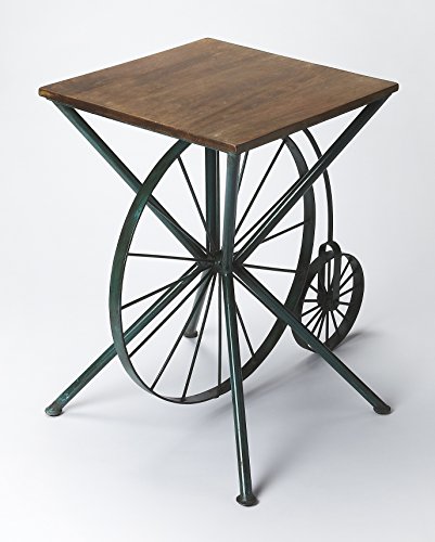 Industrial chic. Made from iron and mango wood solids. Moderate distressed finish. 33 in. W x 20.5 in. D x 30 in. H (51 lbs.)