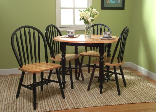 This 5-piece Double Drop Leaf Dining Set will add a touch of country appeal to your dining or kitchen. Table includes two convenient 7-inch drop leaves, allowing you to adjust the size of your serving area. Table measures 40-inch diameter by 29-inch ...