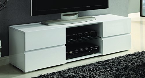 Bring a contemporary look and feel into your living space with this TV stand. Rectangular in shape, it features a bold, modern design that offers plentiful storage space. Four storage drawers are perfect for movies and small electronics while a sturd...