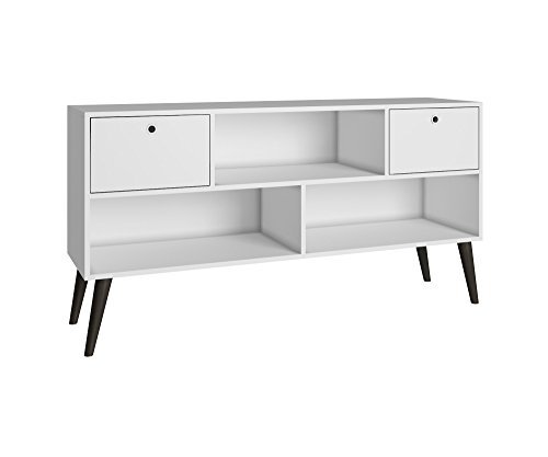 Includes hardware, two drawers and three shelves. Used as a TV Stand and Media Center. Space for media and other accessories. Splayed legs. Fashion furniture. Fits a 42 in. TV screen. Warranty: 90 days limited. Made from melamine MDP. Flourescent and...