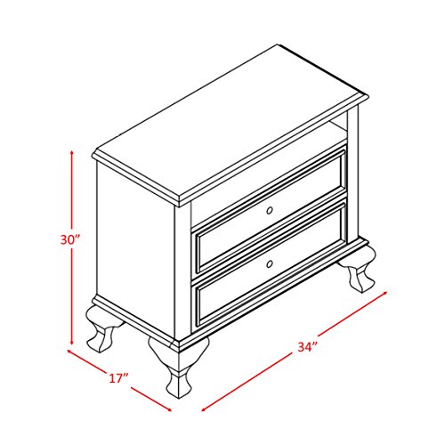 The Abbey Avenue Bailey media chest is both delicate and carefree in style. Cabriole feet and stunning crystal-like acrylic knobs make it ideal for a youthful yet elegant room in need of efficient storage options. Intricate moldings round out the whi...
