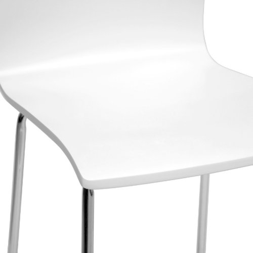 Our Greta Modern Bar Stool's straightforward design brings an understated beauty to any kitchen or bar area. A white plywood seat sits atop a sturdy chrome-plated steel base with black plastic non-marking feet. The Greta Stool is made in China, requi...