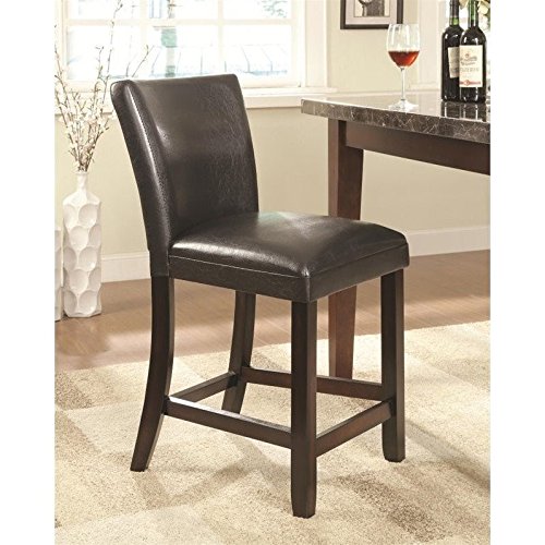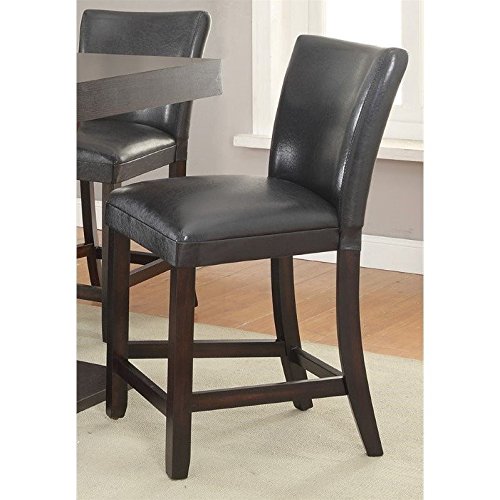 Set of 2. Contemporary style. Black faux leather upholstery. Wooden legs. Assembly required. Seat height: 24 in.. Overall: 24 in. W x 19 in. D x 39.5 in. H. Warranty. Pull this counter stool up to your kitchen table or bar set.