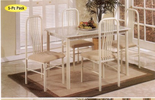 Ivory 5-pc Dinette set is constructed with a beautiful Ivory Marble finish. Gracefully curved with sturdy metal frame work, that's masterfully formed out for table back. Added feature of upholstered seating for your comfort and style. Make this piece...