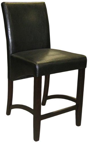 Black finish faux leather counter height chair with espresso finish wood legs. Various uses for dining or bar seating.
