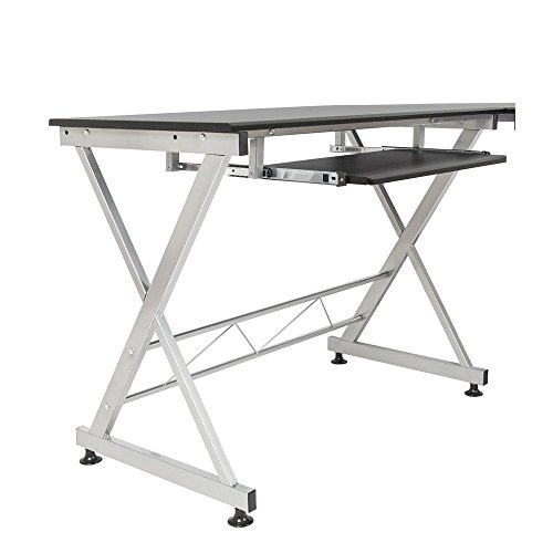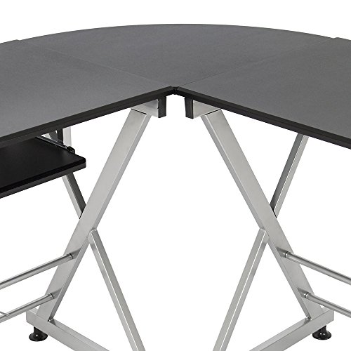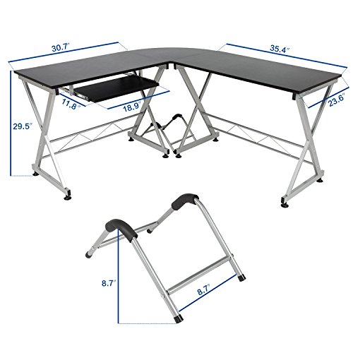 Product Description: Specs: - Overall size: 59"L x 55"W x 29.5" - Material: Wood & steel - Color: Black - Shipping Weight: 62.5lbs- with Sliding Keyboard Shelf Features: - Modern computer desk for home & office comfortable seat - Engineered woo...