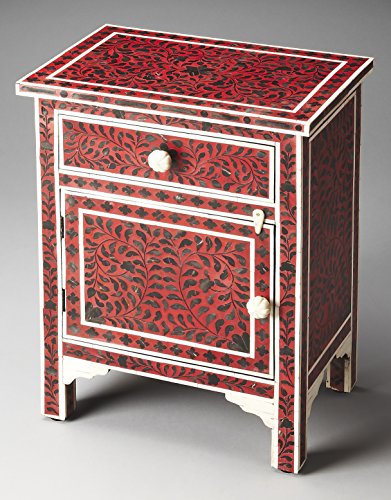 Sophisticated artistry and consummate craftsmanship. Botanic pattern with stem to stern. Bone inlays in dyed black pieces. Individually applied in a field of red by the hands of a skillful artisan. Hand-applied bone inlays white frames and borders. W...