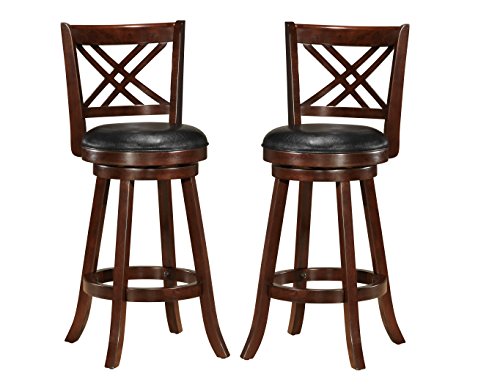 Add functional and homey seating in your home bar or the gathering area in your home.This smart looking crafted wood backrest swivel 29?H bar stool features a swivel capability with a gorgeous cappuccino finish, a support and foot rest ring and an up...