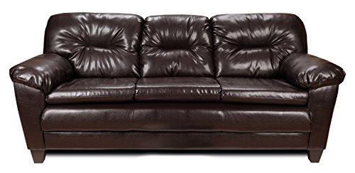 Denver mocha cover. Vinyl upholstery. Kiln dried hardwoods frame. 1.5 density Dacron wrapped cushions. Attached seat and back cushions. Medium seating comfort. N Sag steel Springs provide comfortable and uniform seating. Made in USA. No assembly requ...